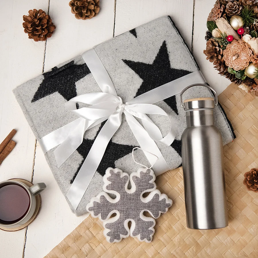 Встречайте рождественские вечера вместе с подарочным набором STARNIGHT. Уютный шарф ЭКЗЮПЕРИ [24300], перенесет в миры Маленького Принца, бутылка для воды с двойными стенками из нержавеющей стали DISTILLER [7251/47] сохранит комфортную температуру вашего согревающего напитка, а украшение СНЕЖИНКА [56000/47] не растает в ваших теплых руках.
